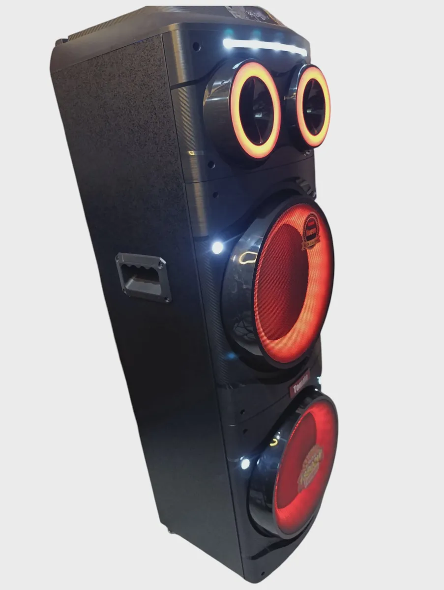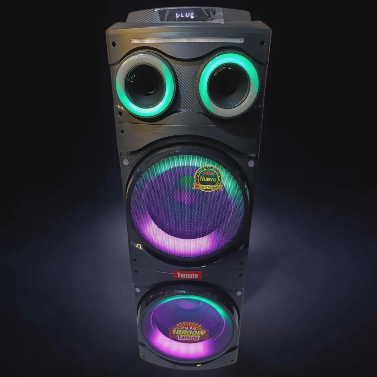 Este parlante cuenta con luces LED que añaden un toque vibrante a tus reuniones, creando un ambiente festivo. Además, incluye dos micrófonos, lo que lo convierte en la opción ideal para sesiones de karaoke con amigos y familiares. Su función de manos libres te permite atender llamadas sin interrumpir la diversión.